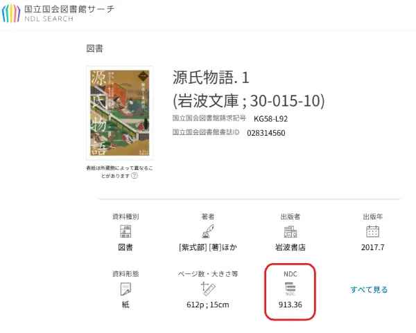 岩波文庫の『源氏物語』は、913.36に分類されていますね。